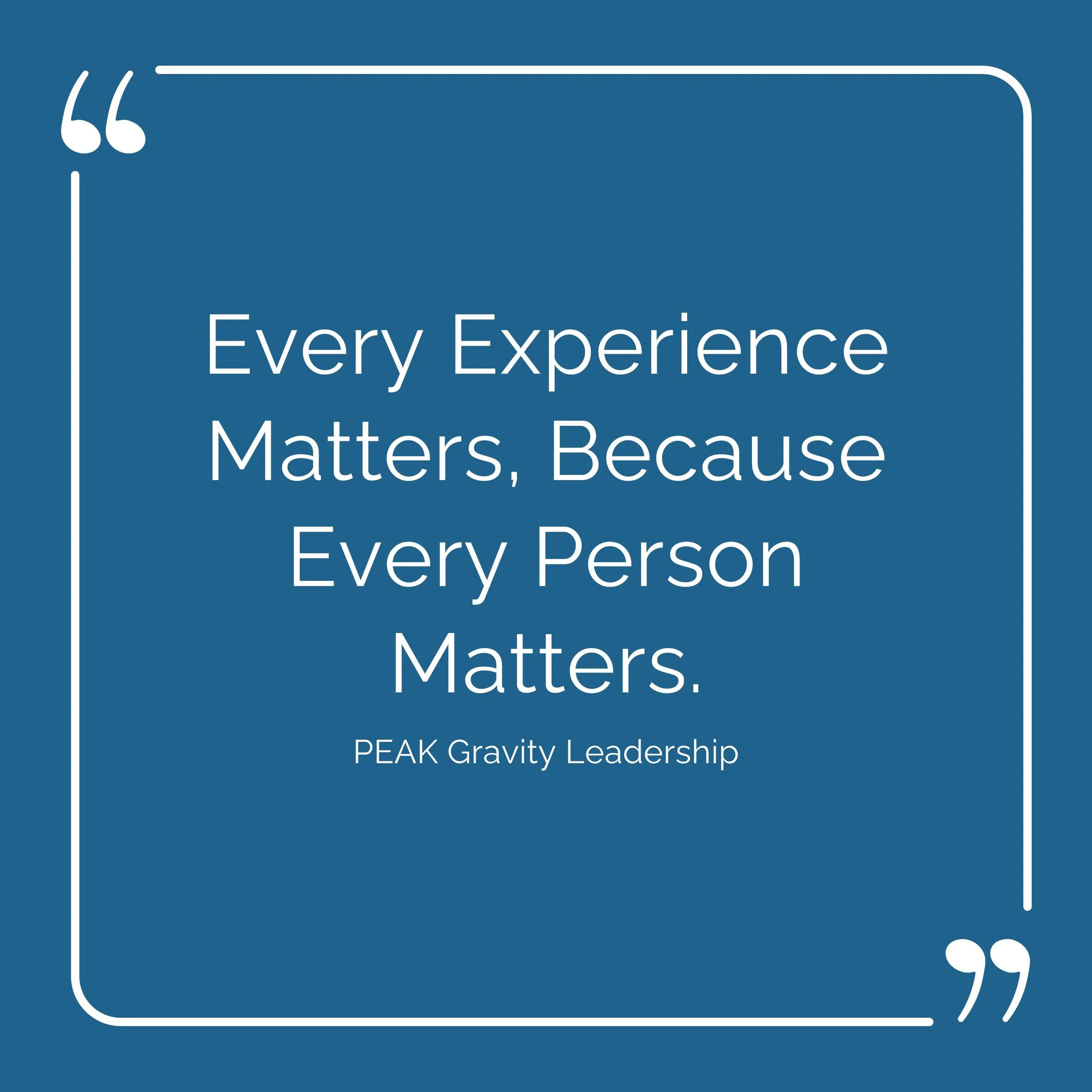 That tension can lead to frustration and burnout. But it can also be a tremendous opportunity. Because while executives set direction, middle managers shape the lived experience of culture — through daily choices, micro-behaviors, and the tone they set for their teams. This is why at Peak Gravity we say “Every Experience Matters.”